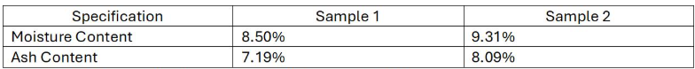 Table 2: Moisture and ash content results from prepASH