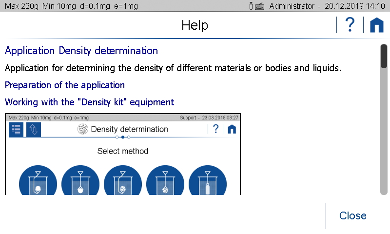 - Kontext Hilfe: Drücken Sie das Hilfesymbol und sofort stellt die Waage die relevante Information kontextbezogen zur Verfügung.
